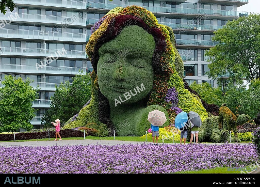 Plant sculpture Mother Earth with modern building behind, Gatineau, Quebec Province, Canada, North America.