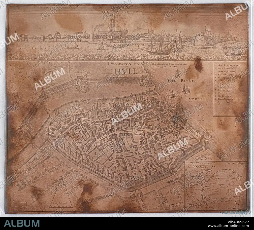 Caption: Copper plate showing a map of Kingston-upon-Hull. Kyngeston-upon-Hull. [London] : W. Hollar fecit, [around 1642]. Source: Maps.177.l.2.