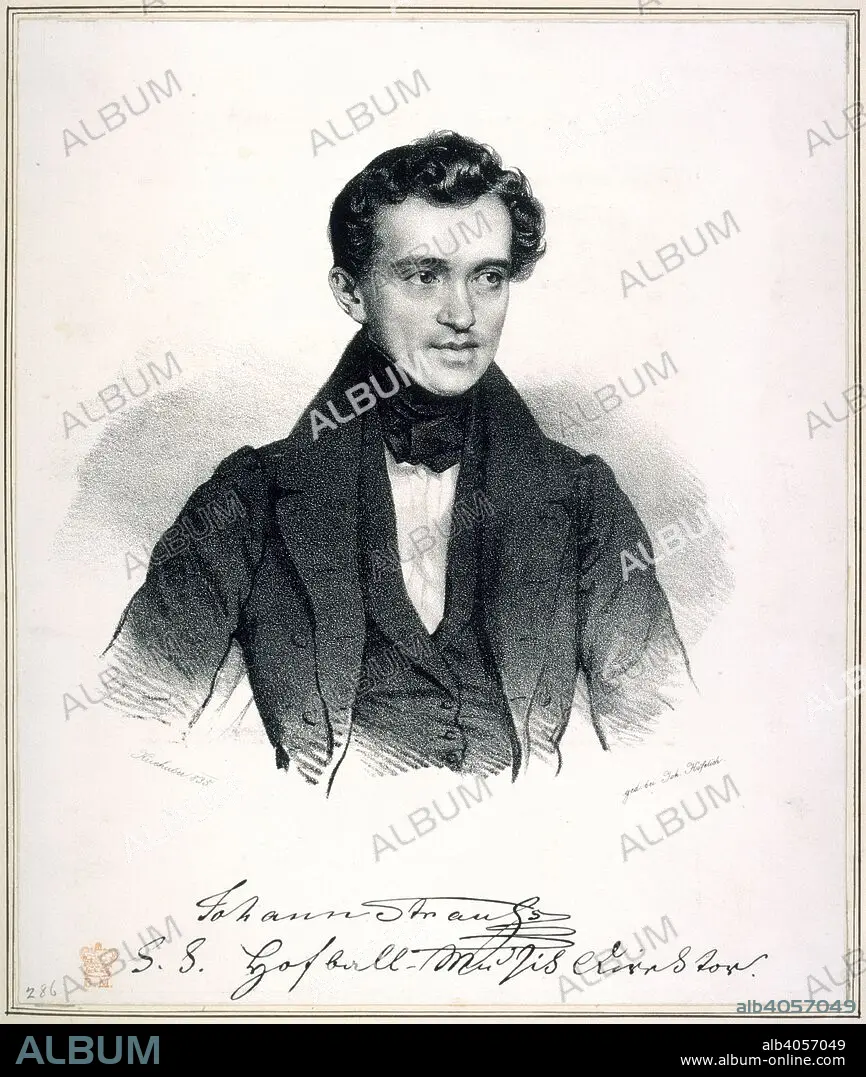 Johann Strauss I. Collections by Eliza Wesley relating to English an. 19th century. Johann Strauss, the elder (1804-1849). Austrian violinist, conductor and composer. Portrait. Image taken from Collections by Eliza Wesley relating to English and foreign composers, musicians, singers and others, consisting of engraved portraits, photographs, newspaper-cuttings, and other printed matter, with a few original letters, etc. Originally published/produced in 19th century. . Source: Add. 35027, f.62.