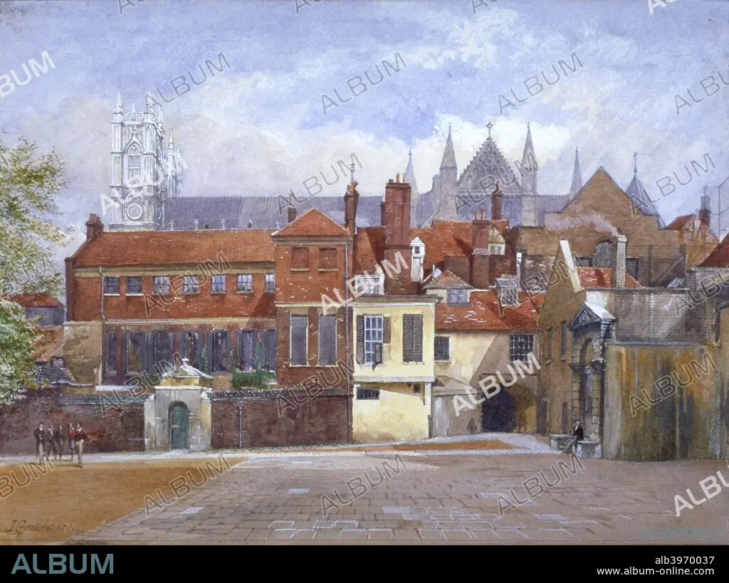 Caption: View of Ashburnham House, Little Dean's Yard, and the entrances to the Deanery at Westminster Abbey. Ashburnham House was purchased by Westminster School in 1882.