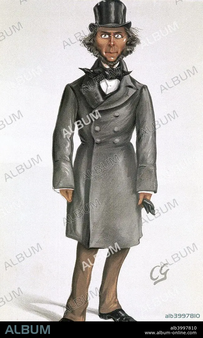 Caption: Herbert Spencer, English philosopher and sociologist, 1879. Born in Derby, Spencer (1820-1903) put forward the idea and coined the term survival of the fittest and was an advocate of social Darwinism. Cartoon from Vanity Fair. (London, 26 April 1879).