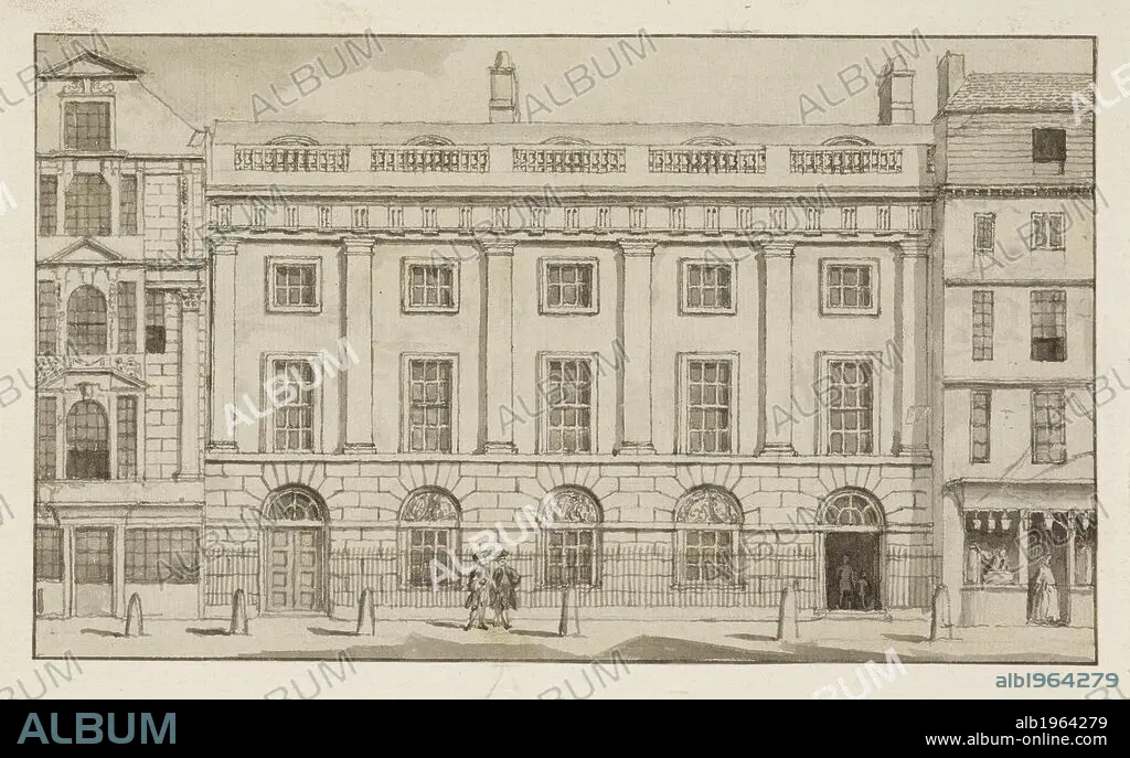 Caption: Illustration of East India House in the city of London. Headquarters of the East Indian company, colonial traders. . East India House, Leadenhall Street. Wale, Samuel (c. 1720-1786); East India House, Leadenhall Street, wash c.1760. Source: WD 2056.