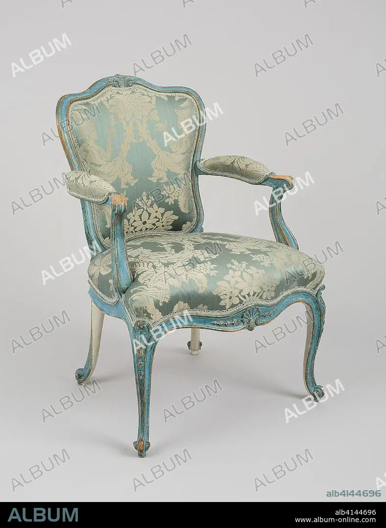 Caption: Armchair. Thomas Chippendale; English, 1718-1779; London, England. Date: 1768. Dimensions: 90.2 × 62.2 × 55.9 cm (35 1/2 × 24 1/2 × 22 in.). Painted oak, modern upholstery. Origin: England.
