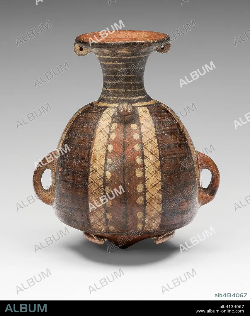 Caption: Miniature Ceremonial Vessel (Aryballos). Inca; South coast or southern highlands, Peru. Date: 1450-1532. Dimensions: 10.2 × 7.3 cm (4 × 3 7/8 in.). Ceramic and pigment. Origin: Peru, southern.