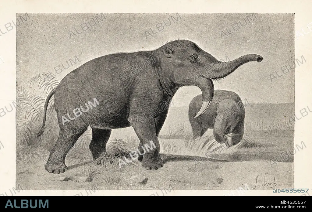 Caption: An ancient elephantine monster, Dinotherium giganteum, Miocene Period. Print after an illustration by Joseph Smit from Henry Neville Hutchinsons Creatures of Other Days, Popular Studies in Palaeontology, Chapman and Hall, London, 1896.