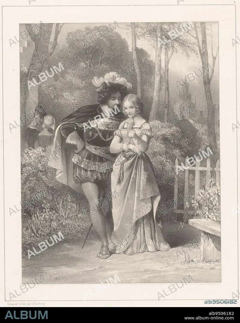 Caption: Faust and Gretel Faust et Marguerite Famous love couples Les amants c, print maker: Jules David (1808-1892), (mentioned on object), Jules David (1808-1892), (mentioned on object), printer: Benard Lemercier & Cie, (mentioned on object), Paris, 1841 - 1843, paper, h 568 mm × w 399 mm