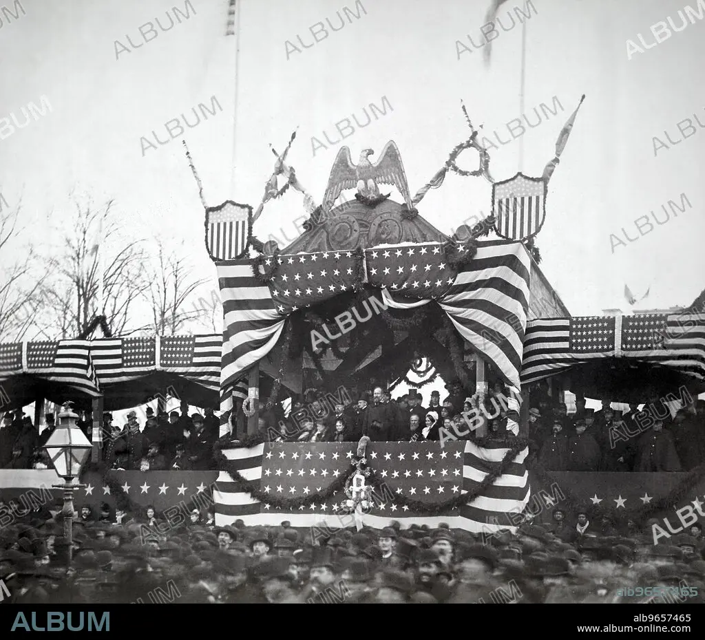 Caption: President James A. Garfield in Reviewing Stand, Viewing Inauguration Ceremonies, Washington DC, USA, March 4, 1881