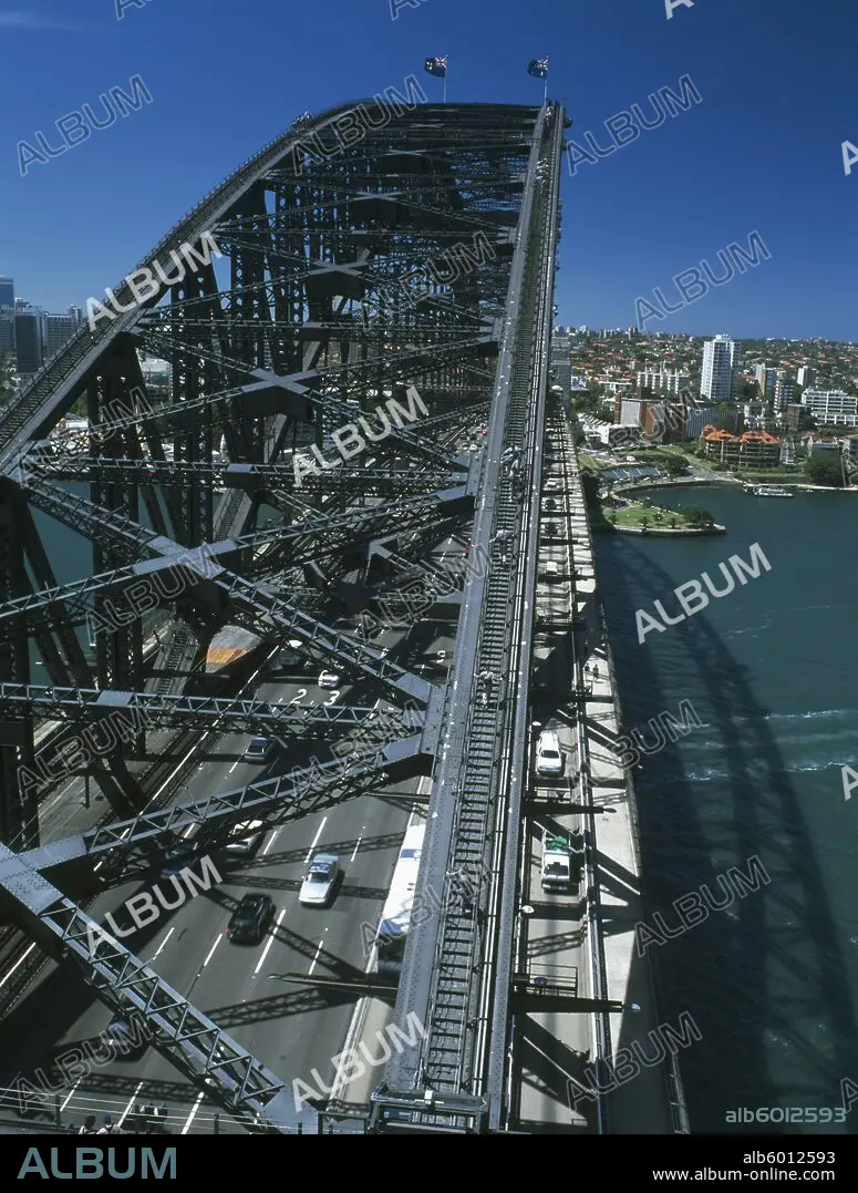 AUSTRALIA New South Wales Sydney Sydney Harbour Bridge seen from Pylon Lookout with people on Bridge Climb below