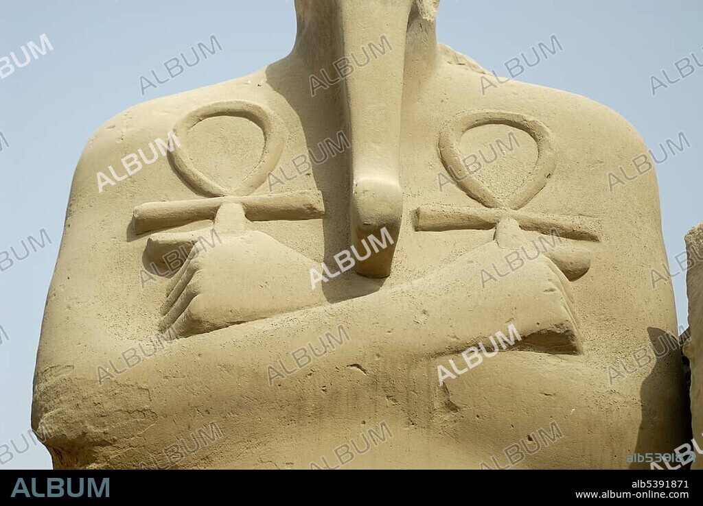 Ankh, Egyptian cross, Ramses statue, Karnak Temple, Luxor, Egypt, North Africa
