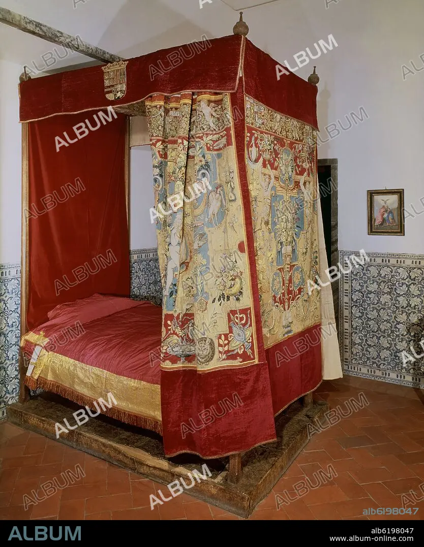 CAMA DE FELIPE II EN LAS HABITACIONES DEL REY EN EL MONASTERIO DEL ESCORIAL - SIGLO XVI