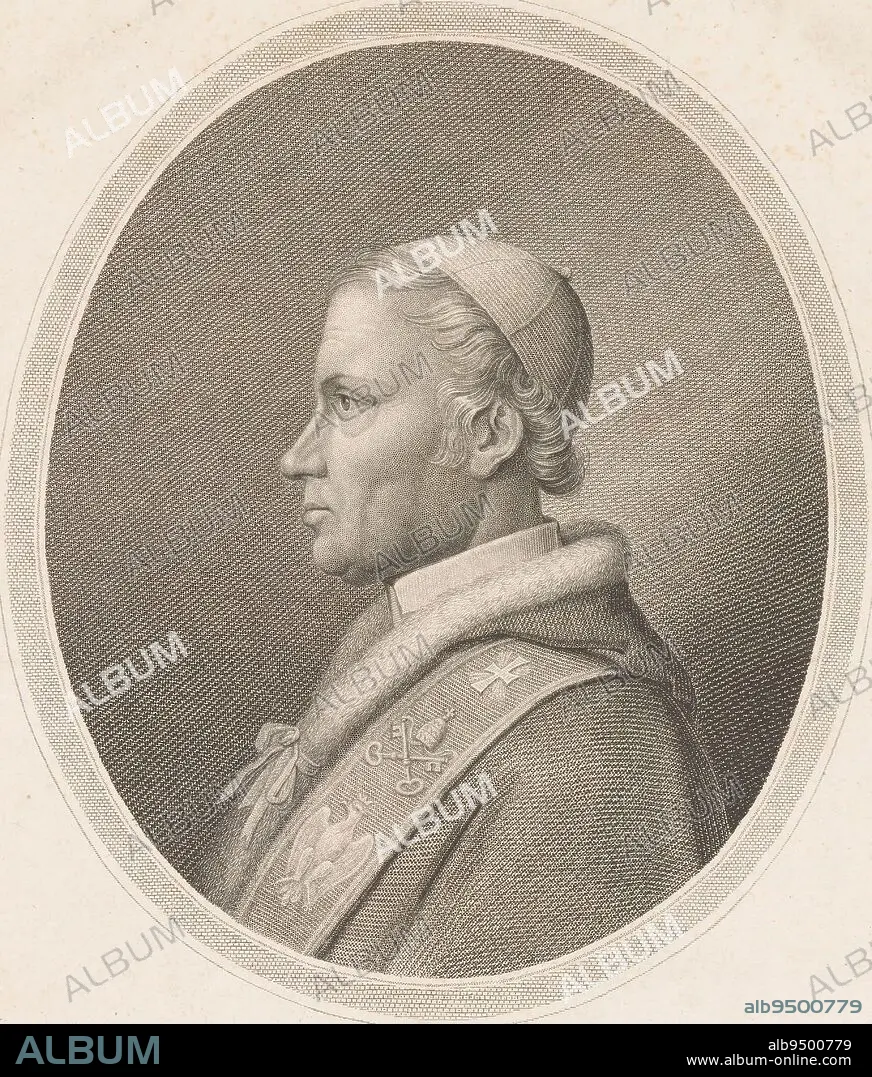 Caption: Portrait of Pope Leo XII, print maker: Leopold Beyer, (mentioned on object), publisher: Artaria & Co., (mentioned on object), Vienna, 1823 - 1877, paper, etching, engraving, h 276 mm - w 202 mm