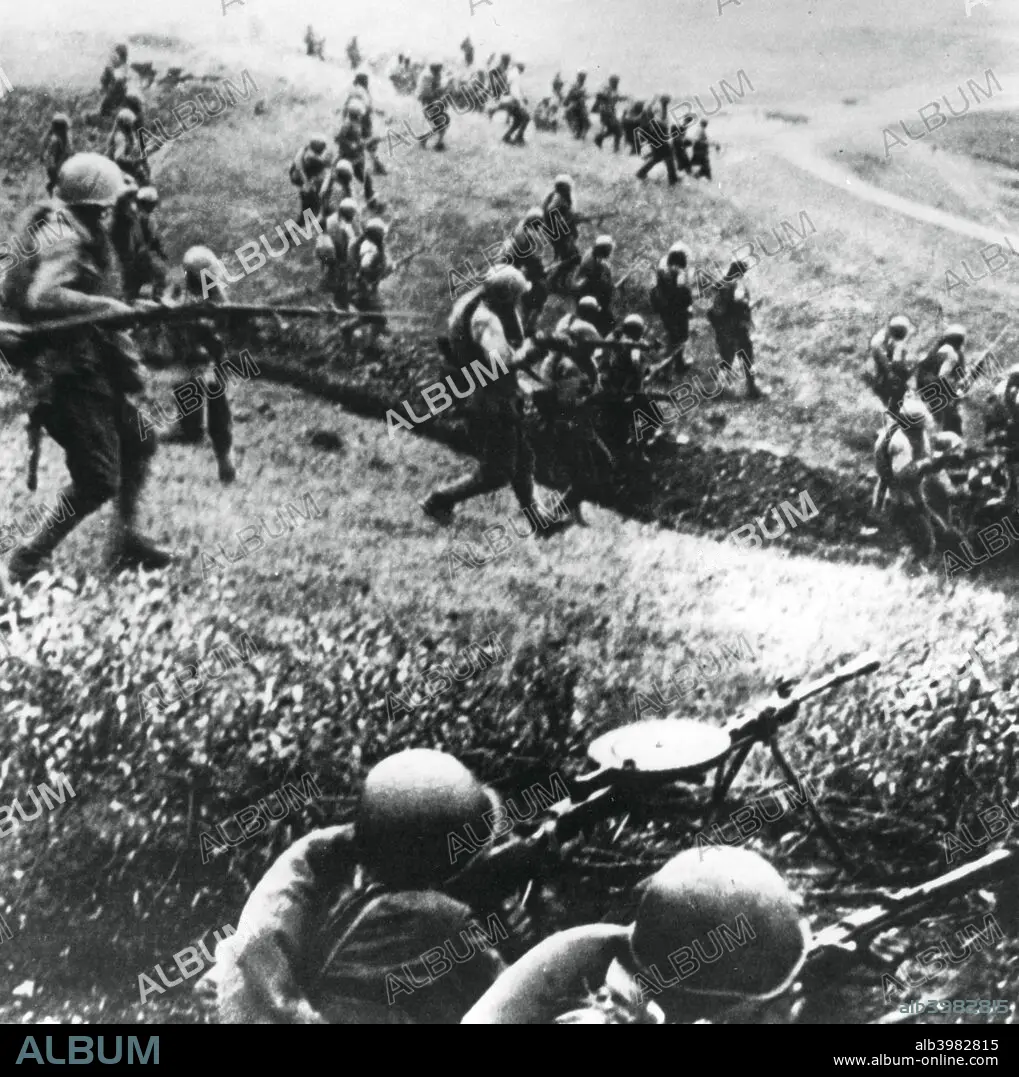 Title: Russian troops on the counter-attack, Mozdok region, northern Caucasus, September 1942. Artist: Unknown