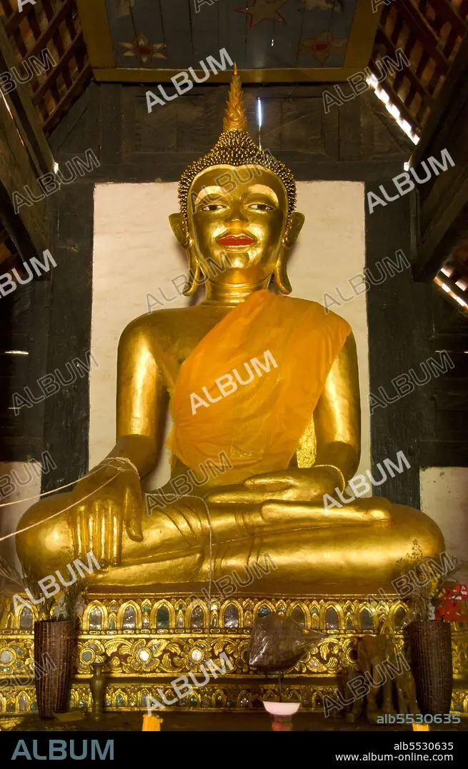 Title: Thailand: Buddha image in the viharn, Wat Pa Daet, Mae Chaem, Chiang Mai Province.