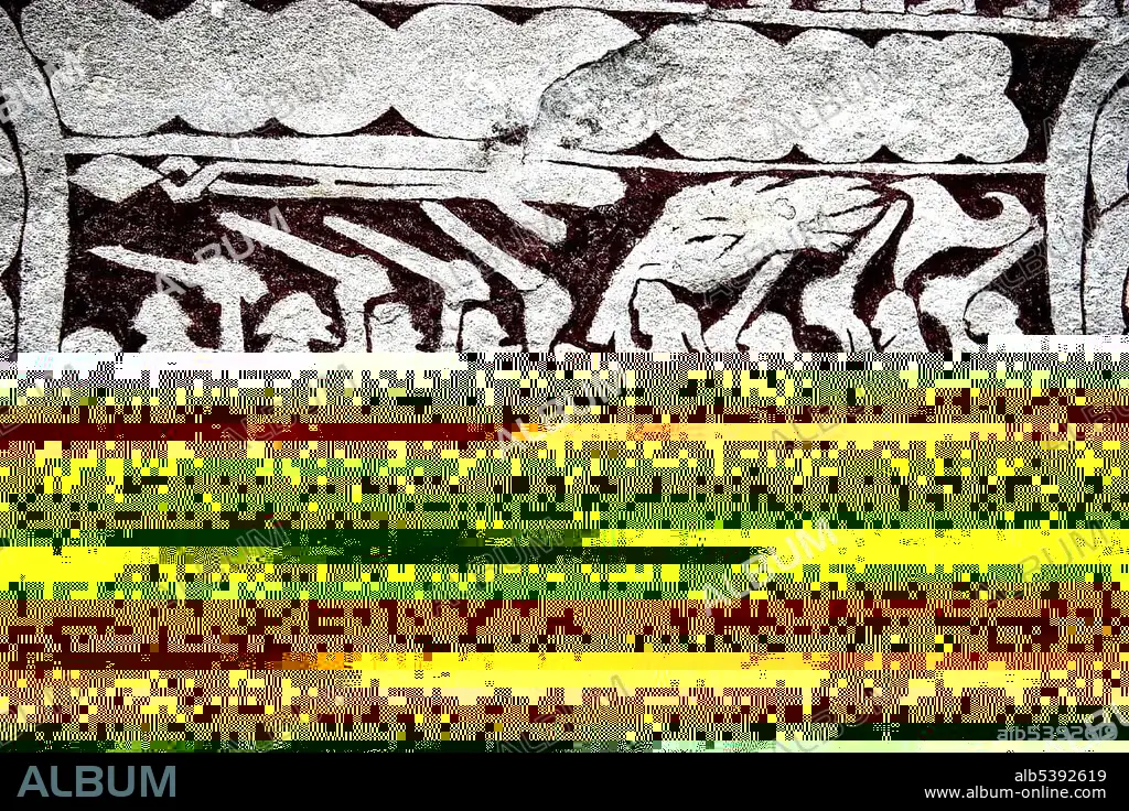 Detail of a Viking picture stone in Bunge, Gotland, Sweden, Europe