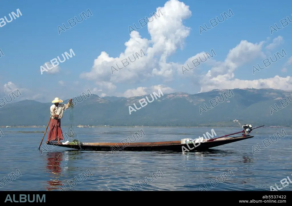 Inle Lake is a freshwater lake located in the Nyaungshwe Township of Taunggyi District of Shan State, part of Shan Hills in Myanmar (Burma). It is the second largest lake in Myanmar with an estimated surface area of 44.9 square miles (116 km2), and one of the highest at an altitude of 2,900 feet (880 m). The people of Inle Lake (called Intha), some 70,000 of them, live in four cities bordering the lake, in numerous small villages along the lake's shores, and on the lake itself. The entire lake area is in Nyaung Shwe township. The population consists predominantly of Intha, with a mix of other Shan, Taungyo, Pa-O (Taungthu), Danu, Kayah, Danaw and Bamar ethnicities. Most are devout Buddhists, and live in simple houses of wood and woven bamboo on stilts; they are largely self-sufficient farmers. Most transportation on the lake is traditionally by small boats, or by somewhat larger boats fitted with single cylinder inboard diesel engines. Local fishermen are known for practicing a distinctive rowing style which involves standing at the stern on one leg and wrapping the other leg around the oar. This unique style evolved for the reason that the lake is covered by reeds and floating plants making it difficult to see above them while sitting. Standing provides the rower with a view beyond the reeds. However, the leg rowing style is only practiced by the men. Women row in the customary style, using the oar with their hands, sitting cross legged at the stern. The Inle lake area is renowned for its weaving industry. The Shan-bags, used daily by many Burmese as a tote-bag, are produced in large quantities here. Silk-weaving is another very important industry, producing high-quality hand-woven silk fabrics of distinctive design called Inle longyi. A unique fabric from the lotus plant fibers is produced only at Inle lake and is used for weaving special robes for Buddha images called kya thingahn or 'lotus robe'.