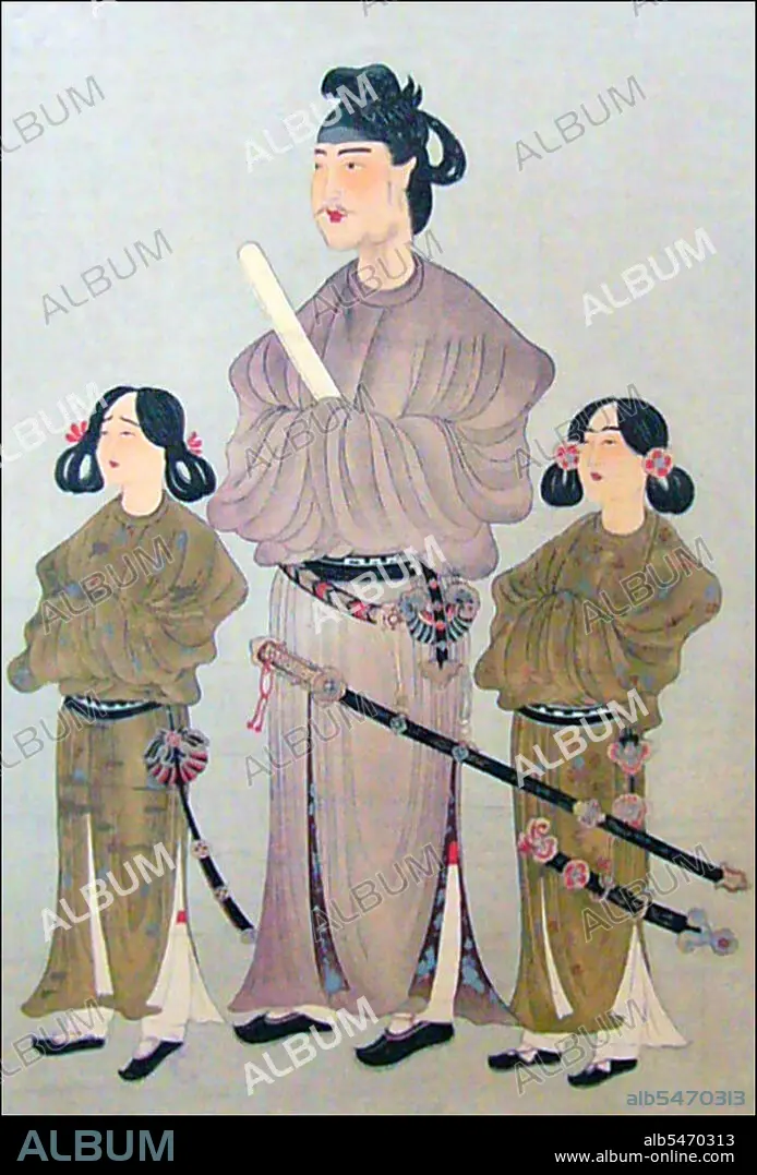Prince Shotoku (Shotoku Taishi, 574–622), also known as Prince Umayado, was a regent and a politician of the Asuka period in Japan. He was a member of the ruling Soga clan. Shotoku was appointed as regent (Sessho) in 593 by Empress Suiko. Shotoku, inspired by Buddha's teachings, succeeded in establishing a centralized government during his reign. In 603, he established the 12 official ranks at court. He is credited with promulgating a Seventeen-article constitution. The Prince was an ardent Buddhist and composed commentaries on the Lotus Sutra, the Vimalakirti Sutra, and the Sutra of Queen Srimala. He commissioned the Shitenno-ji Temple in Settsu province (present-day Osaka). Shotoku's name has been linked with Horyu-ji, a temple in Yamato province. Documentation at Horyu-ji claims that Suiko and Shotoku founded the temple in the year 607. Archaeological excavations in 1939 have confirmed that Prince Shotoku's palace, the Ikaruga-no-miya, stood in the eastern part of the current temple complex, where the To-in sits today. China's Sui Emperor, Yangdi, dispatched a message in 605 that stated: 'The sovereign of Sui respectfully inquires about the sovereign of Wa'. Shotoku responded by sponsoring a mission led by Ono no Imoko in 607. The Prince's own message contains the earliest written instance in which the Japanese archipelago is named 'Nihon', literally, sun-origin (country). The salutation stated: 'From the sovereign of the land of the rising sun (nihon/hi izuru) to the sovereign of the land of the setting sun'. He is said to be buried at Shinaga, in the former Kawachi province (today Osaka prefecture).