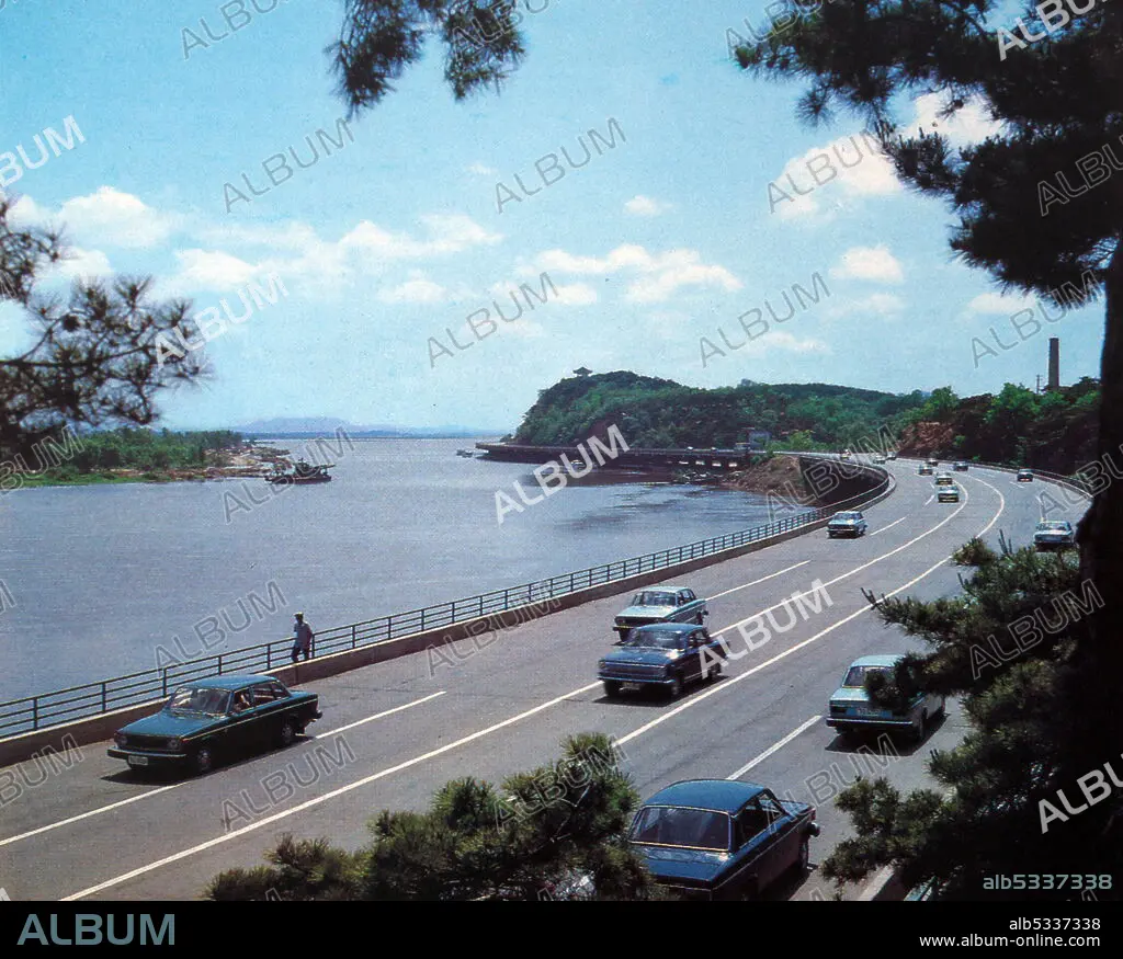 Caption: Road to Mangyongdae. Mangyongdae a neighbourhood in Mangyongdae-guyok, Pyongyang, North Korea. North Korean propaganda claims Mangyongdae as the birthplace of North Korean leader Kim Il-sung.