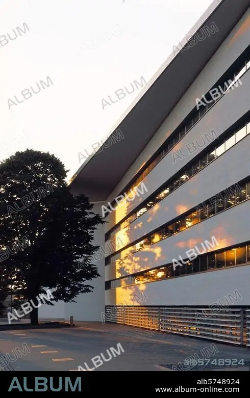 Dortmund, ADAC Hauptverwaltung / Nordfassade im Sonnenaufgang © Florian Monheim Filmsize: 6 × 9 cm.