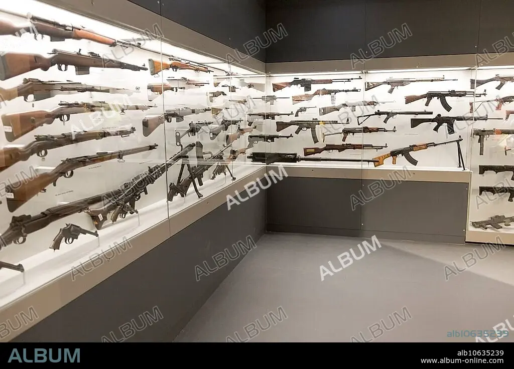 Armoury display of weapons in REME museum, MOD Lyneham, Wiltshire, England, UK
