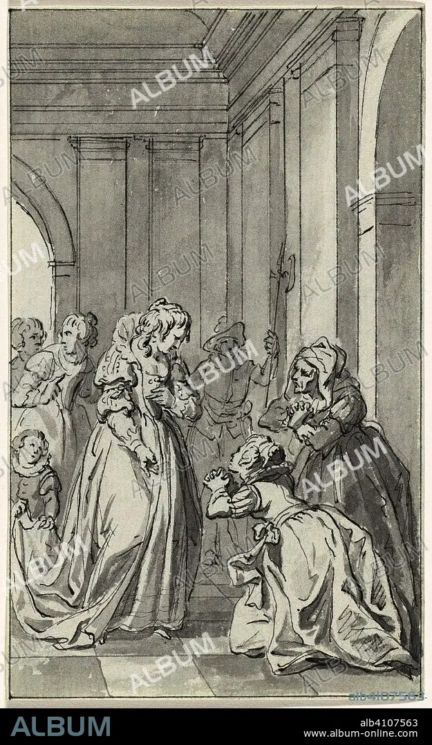 Caption: The wife and mother of Floris de Montmorency, baron de Montigny, beg Anna of Austria to intercede for Montigny, who is being held prisoner in Spain. Draughtsman: Jacobus Buys. Dating: 1788 - 1790. Measurements: h 150 mm × w 90 mm.