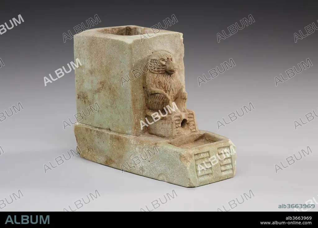 Caption: Water Clock Decorated with a Baboon. Dimensions: H. 5.7 × W. 3.1 × D. 7.2 cm (2 1/4 × 1 1/4 × 2 13/16 in.). Date: 664-30 B.C..