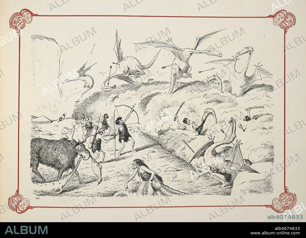 Caption: A little covert shooting !. Prehistoric Peeps. From “Punch.†Drawn by E. T. Reed. [With 26 plates.]. London : Bradbury, Agnew & Co., [1896]. Source: 1876.b.36 peep XXI.