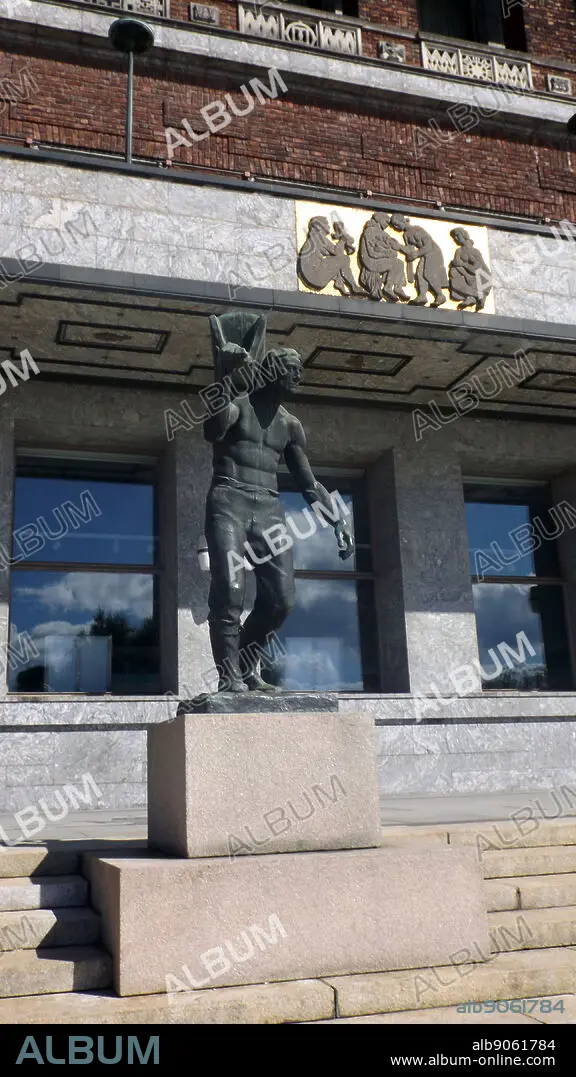 Caption: bronze sculpture outside the Oslo City Hall, Oslo Norway. By Per Palle Storm (1 December 1910 6 January 1994) Danish-born Norwegian sculptor.