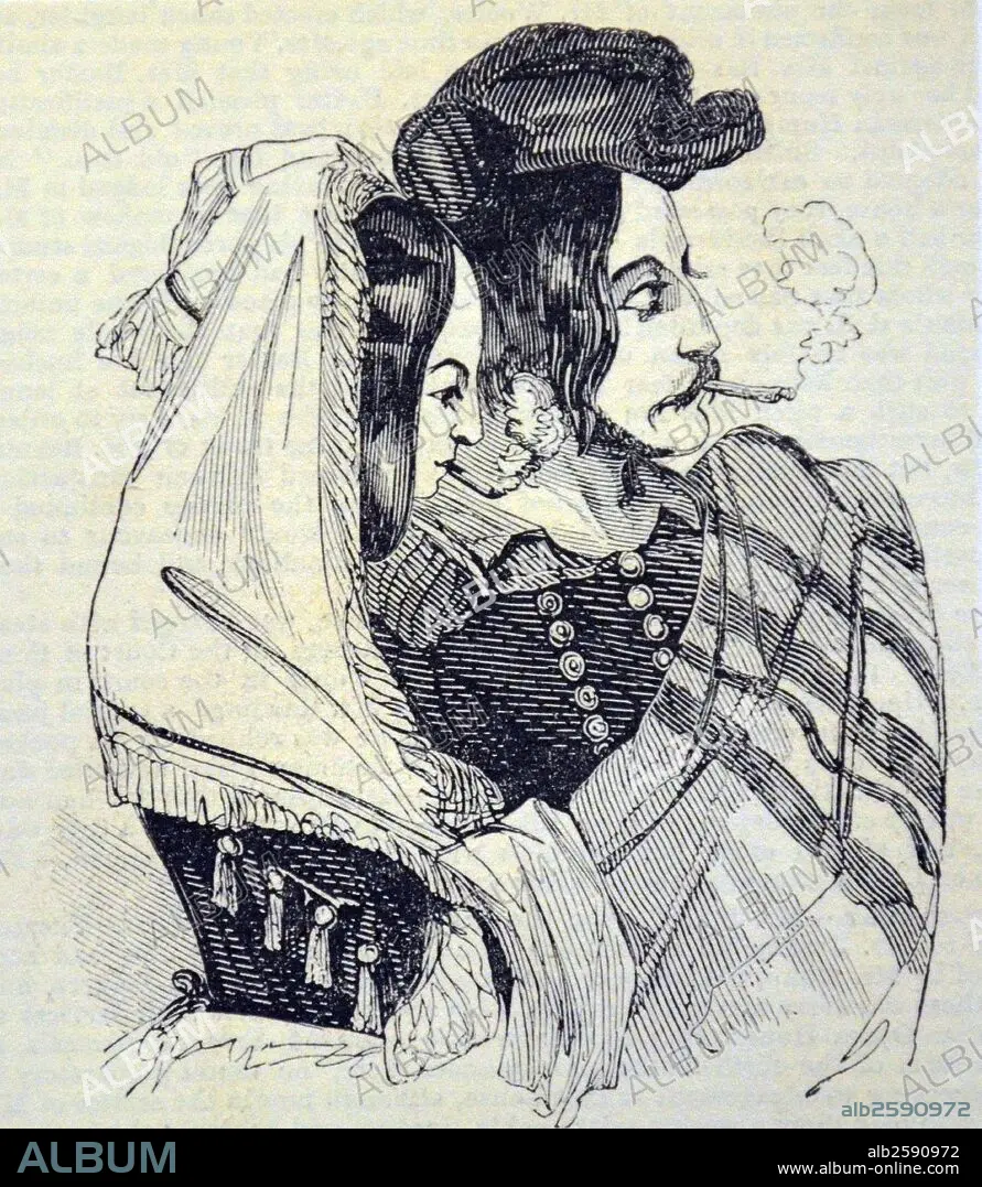 Caption: Spanish man and woman smoking cherrots. Illustration by Alfred Crowquill (Alfred Henry Forrestier (1804-1872) from ''The Illustated London News'', London, 1844. Photo by: .