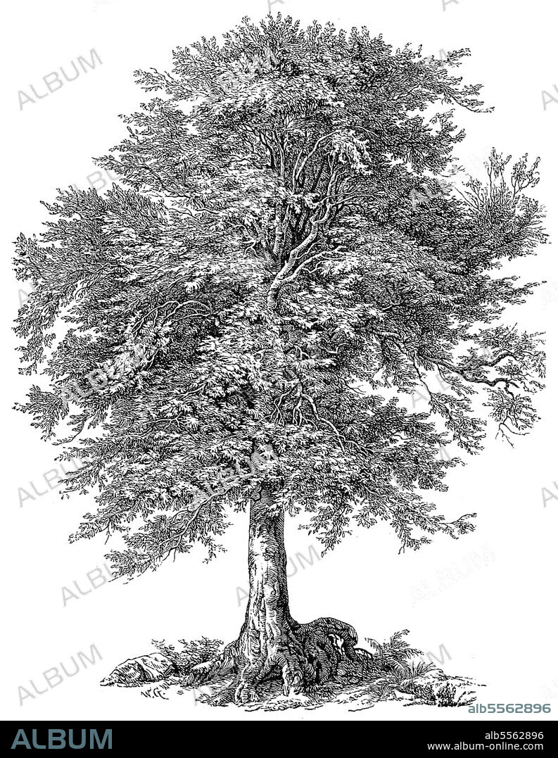 die Rotbuche (Fagus sylvatica) oder Gemeine Buche, digital restaurierte Reproduktion einer Originalvorlage aus dem 19. Jahrhundert
