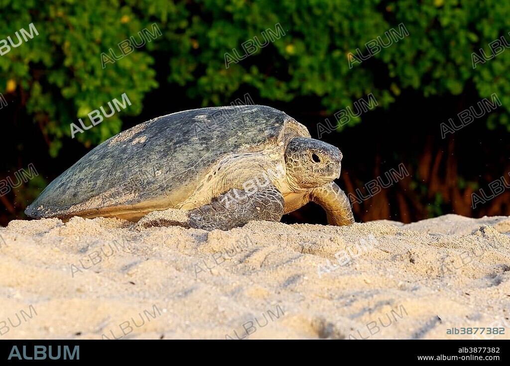 Green Sea Turtle (Chelonia mydas), sand beach, Selangan island, Borneo, Malaysia, Asia