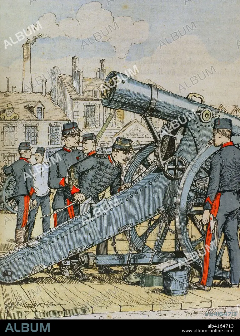 Automatic translation: French Army. Artillery Staff. In the armory. Color illustration of the "Armeé Française, Nos Soldats" (French Army, Our Soldiers). Author, Eugene Hennebert (1826-1896). Paris, H. 1890. Military Historical Library of Barcelona, Catalonia, Spain