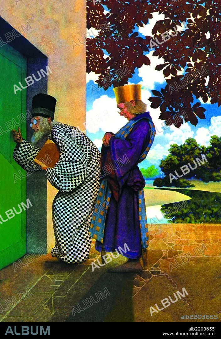 Caption: Maxfield Parrish (1870 – 1966) was an American painter and illustrator. He worked on comission on books, advertising campaigns, magazines, and even sculpture. He was famous for his "girls on rocks" but his work went well beyond that series.