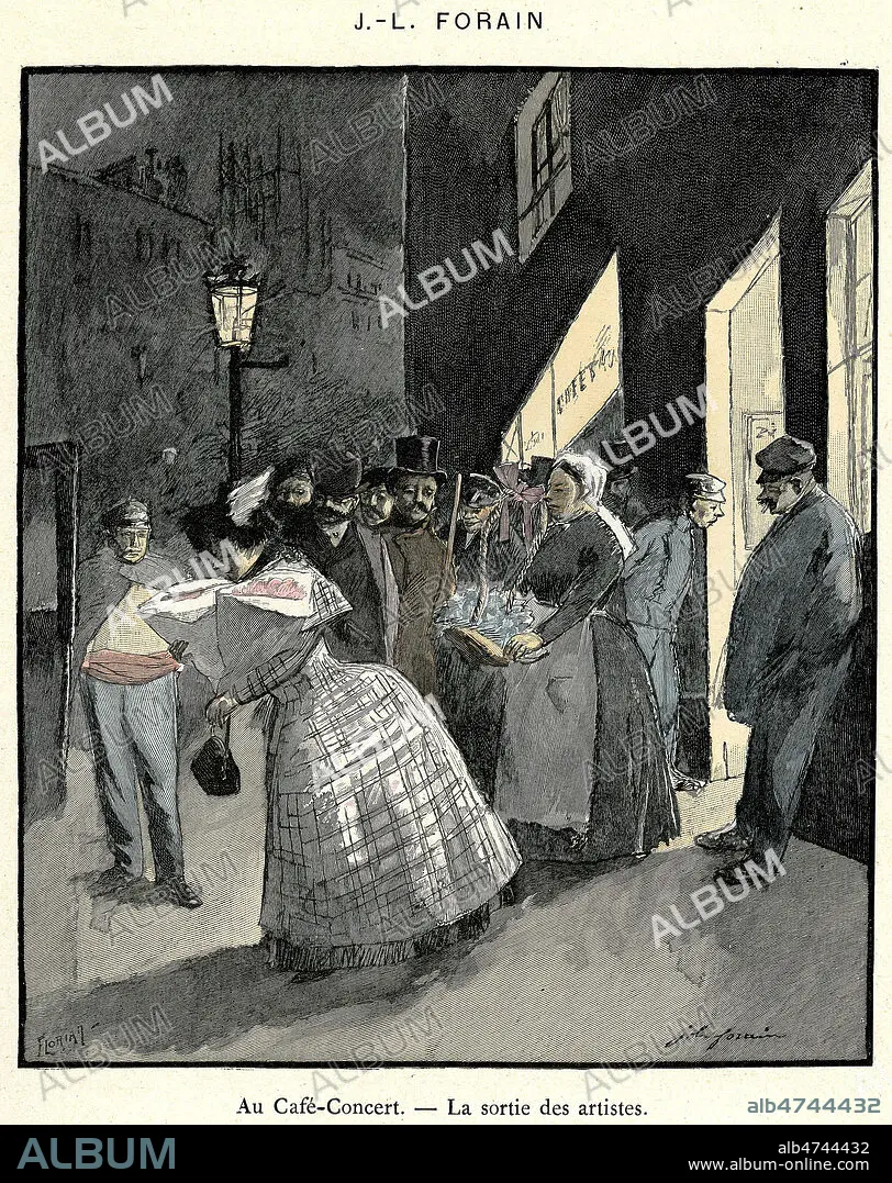 Au cafe-concert. Sortie des artistes. Illustration de Jean Louis FORAIN (1852-1931) reprise en 1892 dans L'art du rire et de la caricature par Arsene ALEXANDRE (1859-1937). Credit : Coll. KHARBINE-TAPABOR.