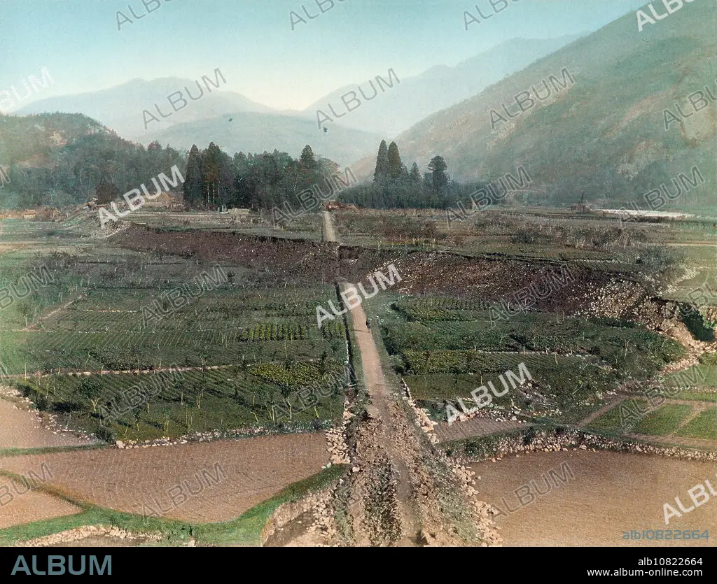 Caption: [ 1890s Japan - Nobi Earthquake Fault Line ] The Neodani Fault () scarp in Motosu City () in Gifu Prefecture after the Nobi Earthquake (, Nobi Jishin) of October 28, 1891 (Meiji 24). The Nobi Earthquake measured between 8.0 and 8.4 on the scale of Richter and caused 7,273 deaths, 17,175 casualties and the destruction of 142,177 homes. It is the largest recorded quake in inland Japan. It jumpstarted the study of seismology in Japan and proved that earthquakes are caused by fault lines. 19th century vintage albumen photograph.
