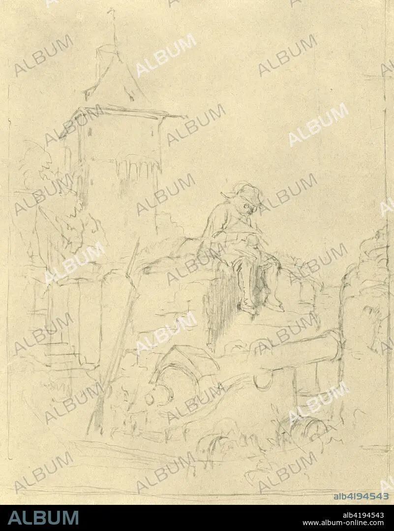 'Die Schildwache', mid-late 19th century, (c1924). 'The sentry'. A soldier on the battlements looks into the distance. From "Die gute alte Zeit: Zeichnungen von Karl Spitzweg", (The Good Old Days: drawings by Karl Spitzweg). [Benjamin Harz, Berlin-Vienna, c1924]