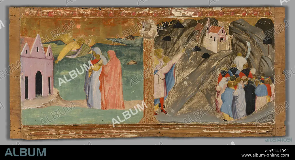 Artist: Fra Angelico, Italian, ca. 13951455, The Apparition of Saint Michael at Mont Saint-Michel and the Miracle of the Bull at Monte Gargano, Tempera on panel, 42.2 × 90.5 cm (16 5/8 × 35 5/8 in.), Made in Florence, Italy, Italian, Florence, 14th century, Paintings