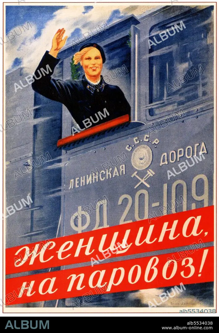 Title: Russia / Soviet Union: 'Woman, work on the locomotives! '. Soviet propaganda poster, O. Deinenko,1939