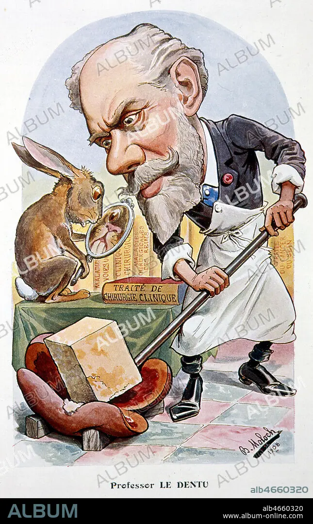 Le Professeur Jean Francois Auguste LE DENTU (1841-1926). Illustration par MOLOCH (1849-1909) pour Chanteclair de 1909. Credit : Collection KHARBINE-TAPABOR