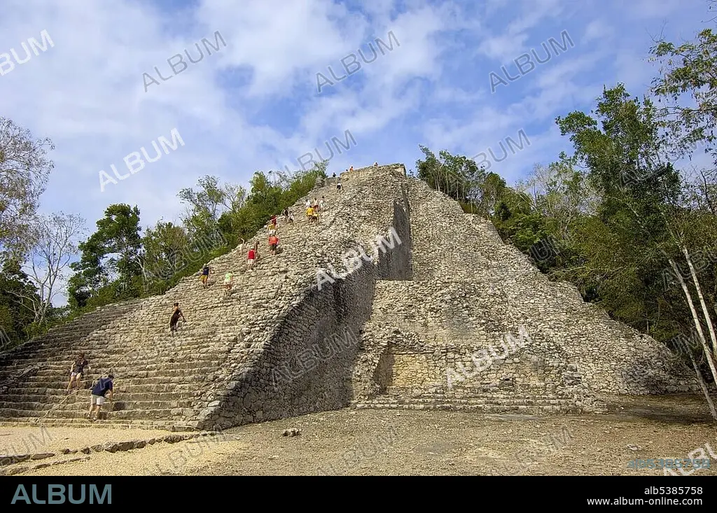 Nohoch Mul Pyramid, Mayan ruins of Coba, Quintana Roo state, Mayan Riviera, Yucatan Peninsula, Mexico, Central America.