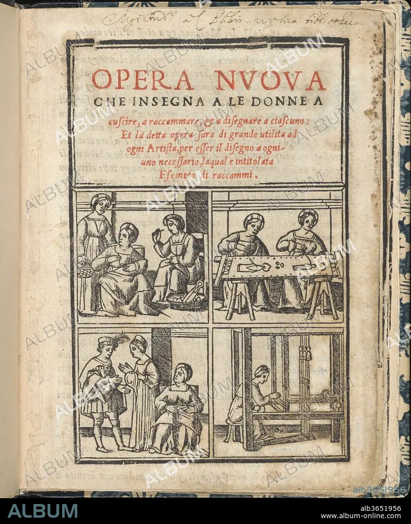 This book of 'Examples of Needlework' was conceived by the venetian Giovanni Antonio Tagliente and published by Giovanantonio da Sabbio and his brothers in Venice, Italy. First published in 1527, it wass one of the first and very original textile pattern books to be issued in Italy after the emergence of the genre in Germany in 1523. Tagliente also includes a long description on how the patterns could be transferred onto textile substrates.