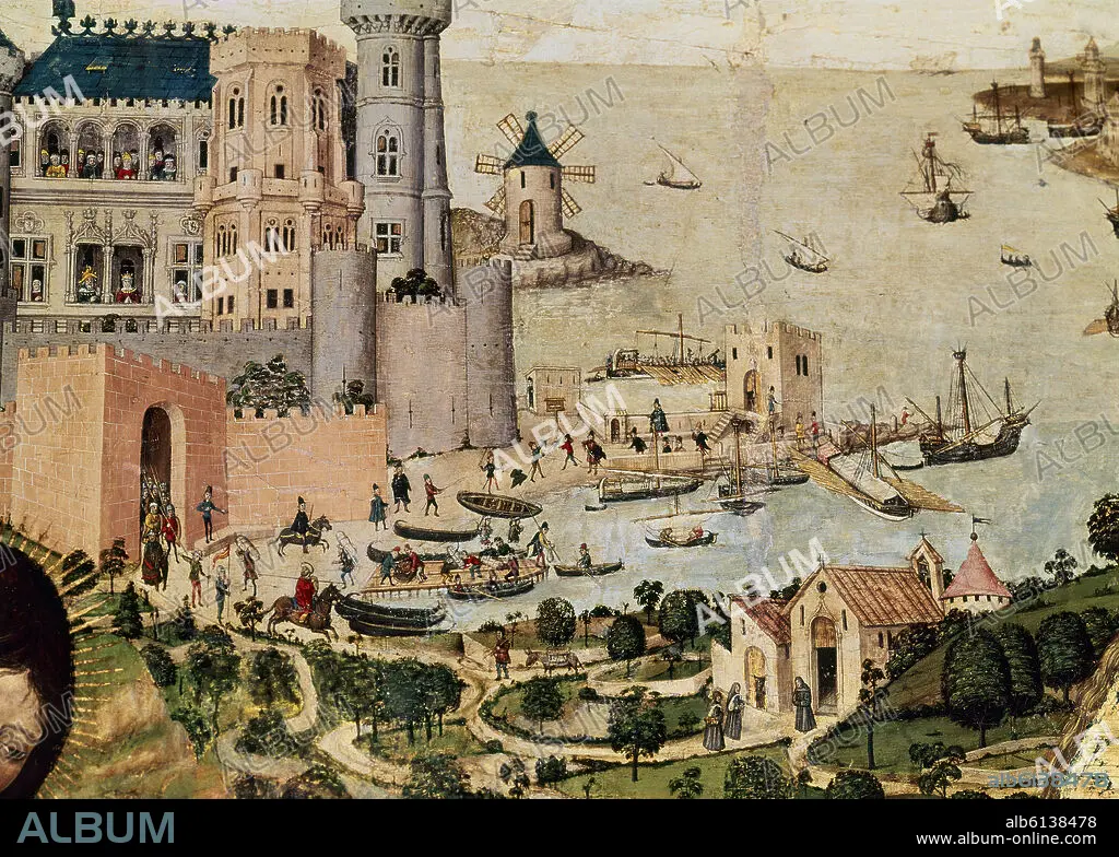 Automatic translation: ALTARPIECE OF SAN JORGE XV CENTURY - DETAIL OF THE PORT OF PALMA DE MALLORCA - SPANISH GOTHIC