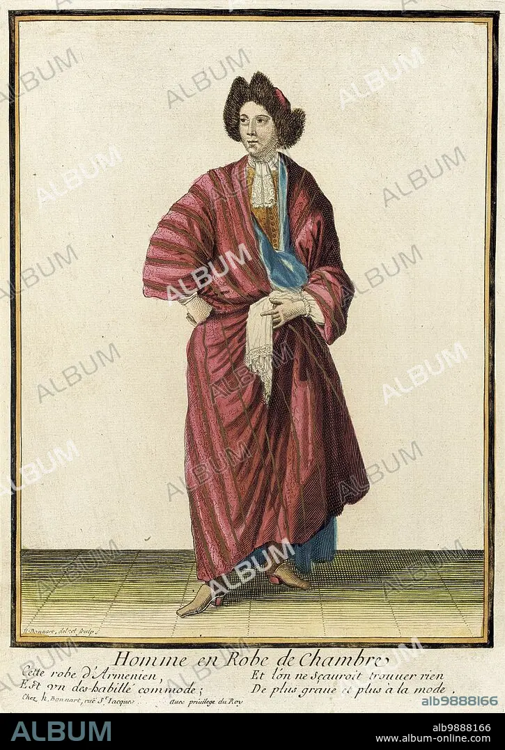 Title: Recueil des modes de la cour de France, 'Homme en Robe de Chambre', 1676. Creators: Nicolas Bonnart, Jean-Baptiste Bonnart.