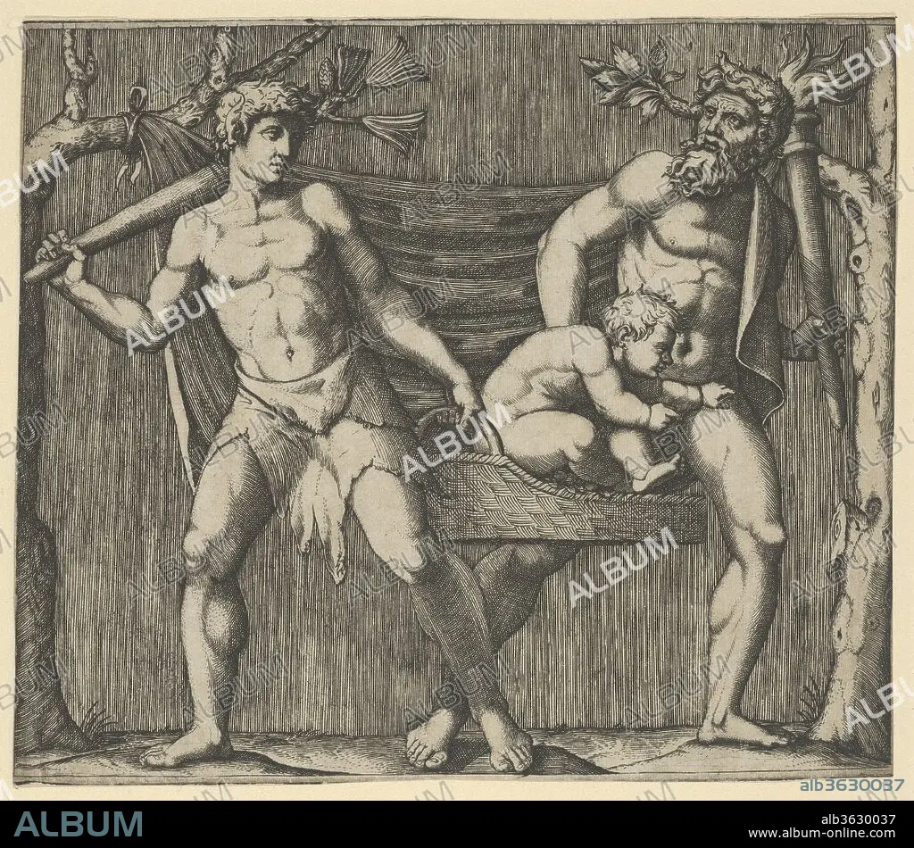 MARCANTONIO RAIMONDI. Two Fauns Carrying a Child