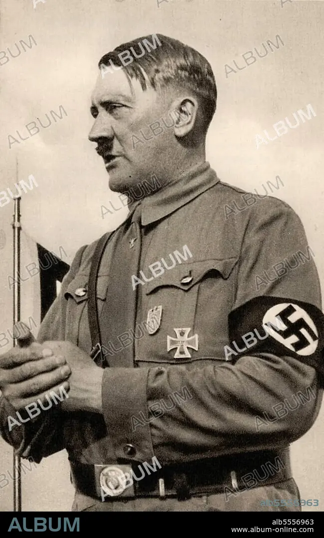 Adolf Hitler (* 20 April 1889 in Braunau am Inn) († 30 April 1945 Berlin), Leader of the Nazi Party, Reich Chancellor from 1933, also self-appointed "Fuehrer" and head of state of Germany