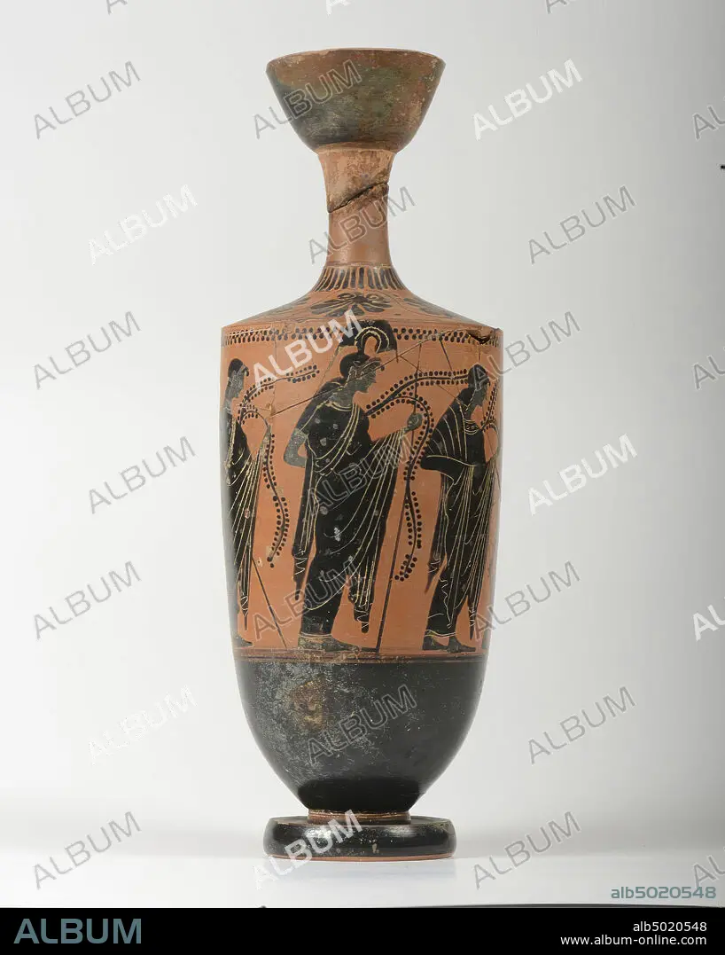 Caption: Classical antiquity, vase, lekythos, earthenware, black-configuration, Attic, 34.9 cm, archaic, black-configuration, Attic, Athena Painter -500, -490, Italy