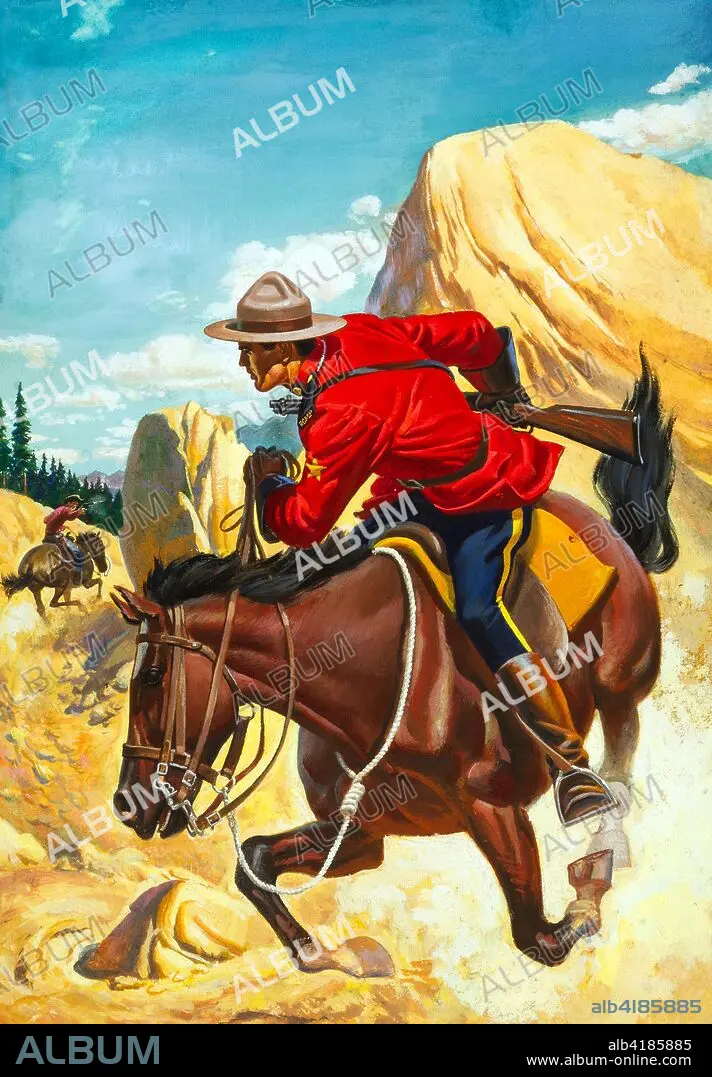 Caption: King of the Royal Mounted #10 Cover Art (1953). Zane Grey's classic Mountie Sergeant, Dave King, is hot on the trail of his man, in this exciting cover illustration For "King Meets Terror in the Wilderness." King of the Royal Mounted had a healthy run in the comics, from 1937's Feature Books #1 through several Four Color numbers and 28 issues of his own title. - William George