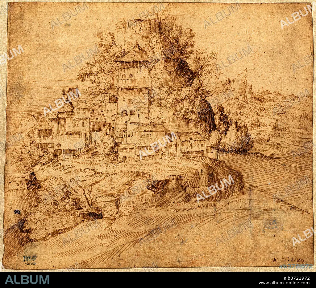 Caption: A Village by a Cliff (recto). Dated: c. 1513. Dimensions: overall: 18.7 x 21.9 cm (7 3/8 x 8 5/8 in.). Medium: pen and brown ink on laid paper.