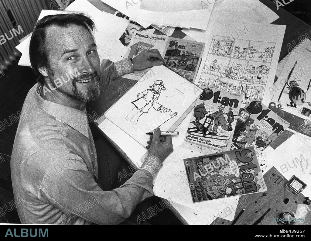ARKIV 740519 Tecknaren Nils Egerbrandt har avlidit efter en tids sjukdom, 78 år gammal. I början av 1960-talet hoppade han in och hjälpte 91:ans skapare Rudolf Pettersson och ett par år senare tog han helt över serien som han sedan tecknade fram till sin död. Hans första egna serie var Mickel och Macken i Seriemagasinet 1950 och han var också känd för serien med eskimåpojken Olli. Nils Egerbrandt gjorde även en tecknad version av Kalle Stropp och Grodan Boll. Foto: Jan Delden Kod: 10 COPYRIGHT SCANPIX SWEDEN