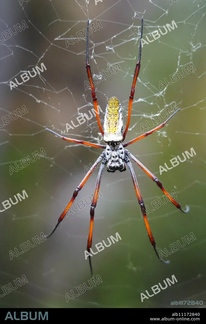 Caption: Madagascar Golden Orb Weaver (Nephila inaurata madagascariensis) female on the web, Isalo National Park, Southern Madagascar, Africa