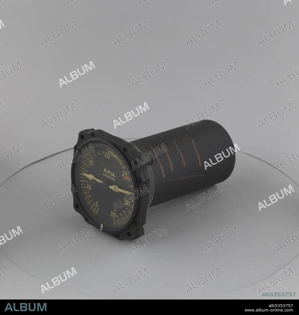 Caption: 3-1/8 in dia;range 400 to 3500 rpm, type e-10;autosyn,26v.elect. The Autosyn was a system developed by the Eclipse-Pioneer Division of the Bendix Aviation Corporation to eliminate the cumbersome plumbing required for instrumentation in increasingly large aircraft. Instead of having many feet of piping, vulnerable to blockage or leaks, the autosyn system used a transmitter located at the source of the input that converted the mechanical or electro-mechanical impulses from a sensor into electrical signals that were sent to a standardized indicator on the instrument panel. The indicator would have a simple easily mounted face that was appropriate to the input sensed by the transmitter.